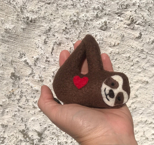 Sloth ornament handmade from recycled fabrics