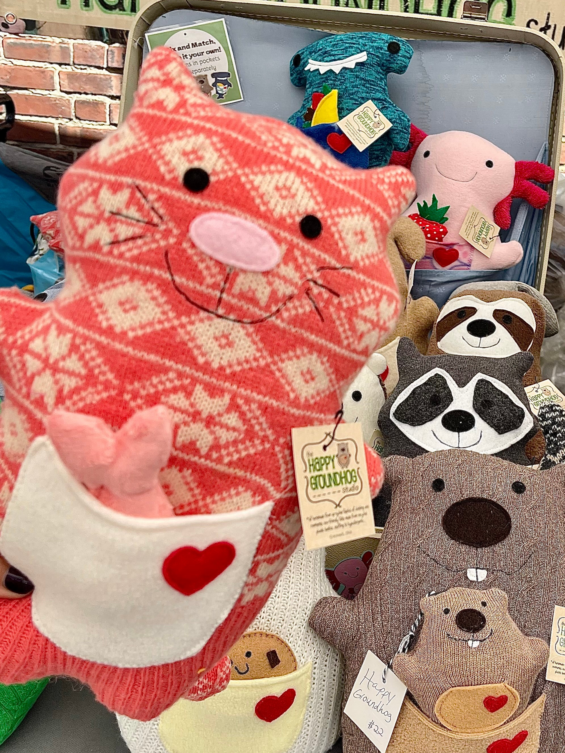 This heirloom quality gift is handmade and crafted from reclaimed sweaters with details made from eco-fi felt. Eco fi felt is made from recycled plastic bottles and the stuffing is hypoallergenic. This super soft plush, cuddly kitty is a Happy Groundhog Studio original design.