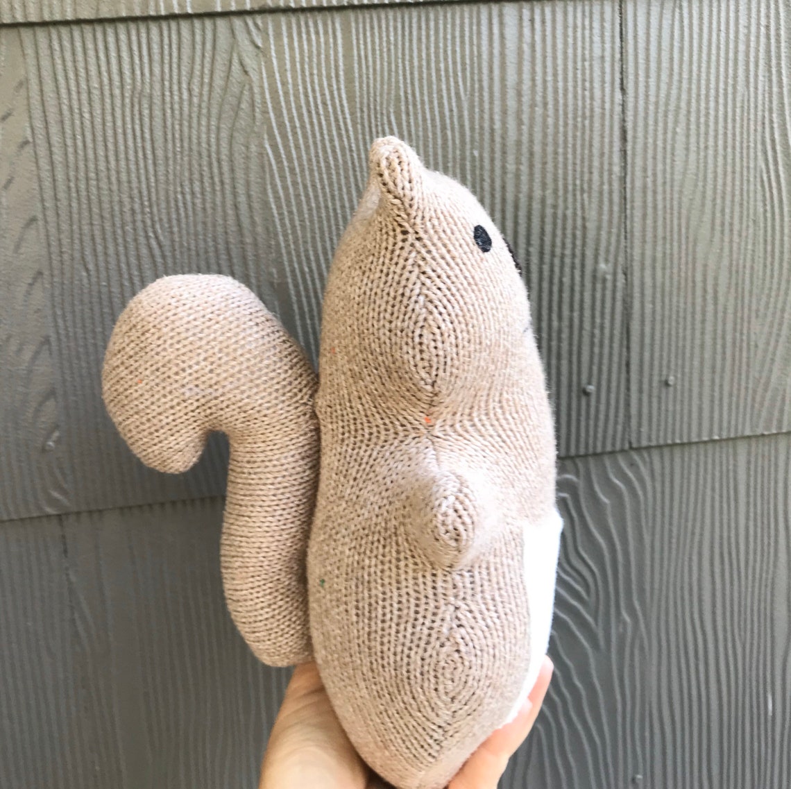 This crafty little squirrel knows just how to win your heart. An heirloom quality gift, the Happy Squirrel, is handmade and crafted from reclaimed sweaters with details made from eco-fi felt. Eco fi felt is made from recycled plastic bottles and the stuffing is hypoallergenic. This Happy Squirrel is a Happy Groundhog Studio original design.
